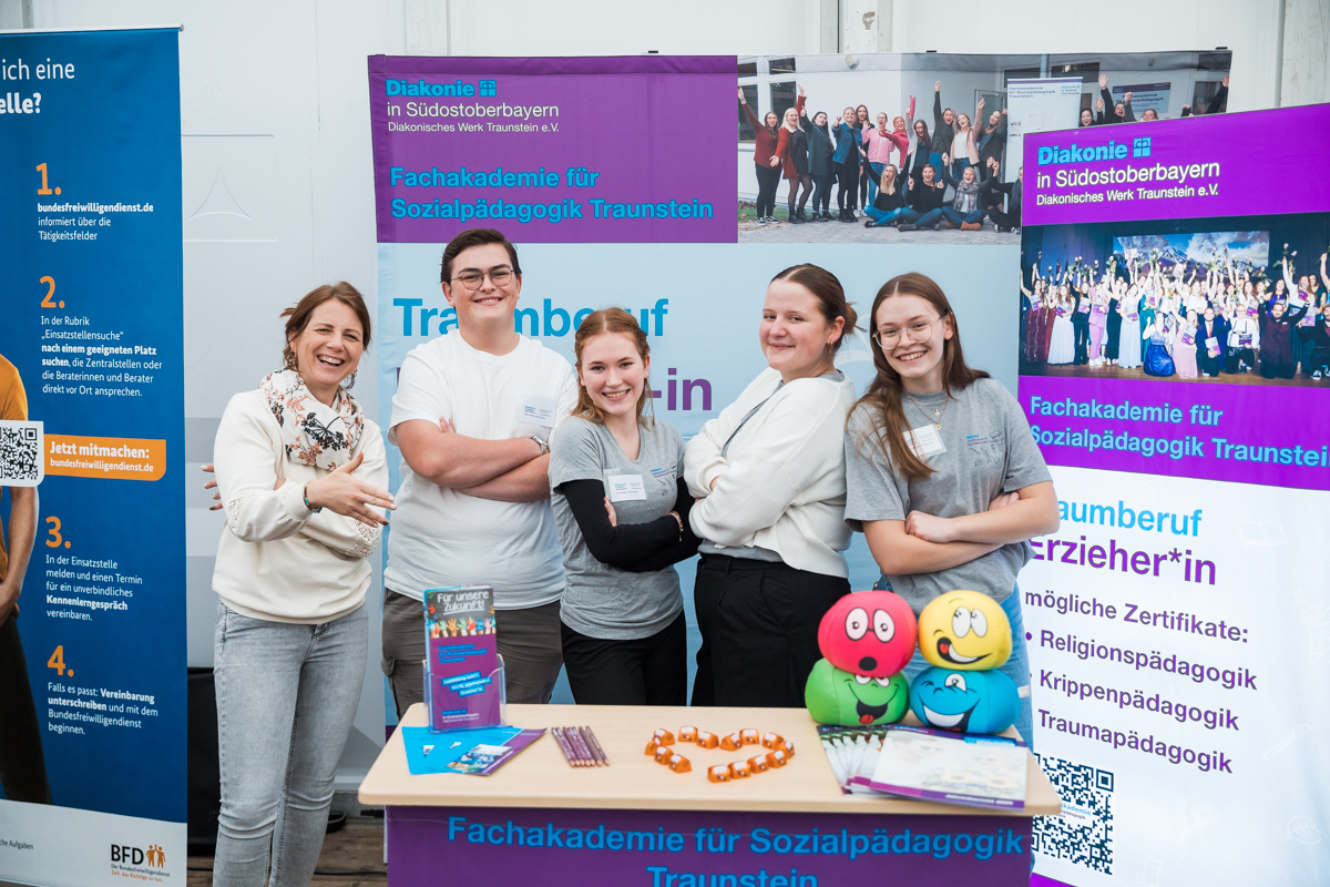 Die Fachakademie für Sozialpädagogik des Diakonischen Werks Traunstein e.V. ist eine evangelische Ausbildungsstätte in der Region Südostoberbayern und begleitet junge Erwachsene auf ihrem Weg, „Staatlich anerkannte Erzieherin (Bachelor Professional in Sozialwesen)“ oder „Staatlich anerkannter Erzieher (Bachelor of Professional in Sozialwesen)“ zu werden. Gemeinsam mit circa 270 Studierenden leben wir Bildung als einen gegenseitigen, partnerschaftlichen Lern- und Entwicklungsprozess, der die individuellen Persönlichkeiten und Erfahrungen ernst nimmt und gleichzeitig zu einer konstruktiven Auseinandersetzung mit Neuem einlädt: „Bildung öffnet Horizonte“.